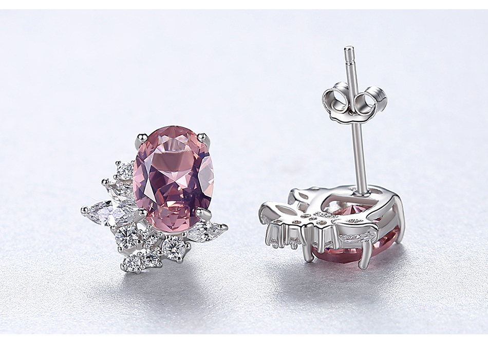 925 Sterling Silver New Design Flower Earrings Morgan Stone Pink Crystal Wedding Earring