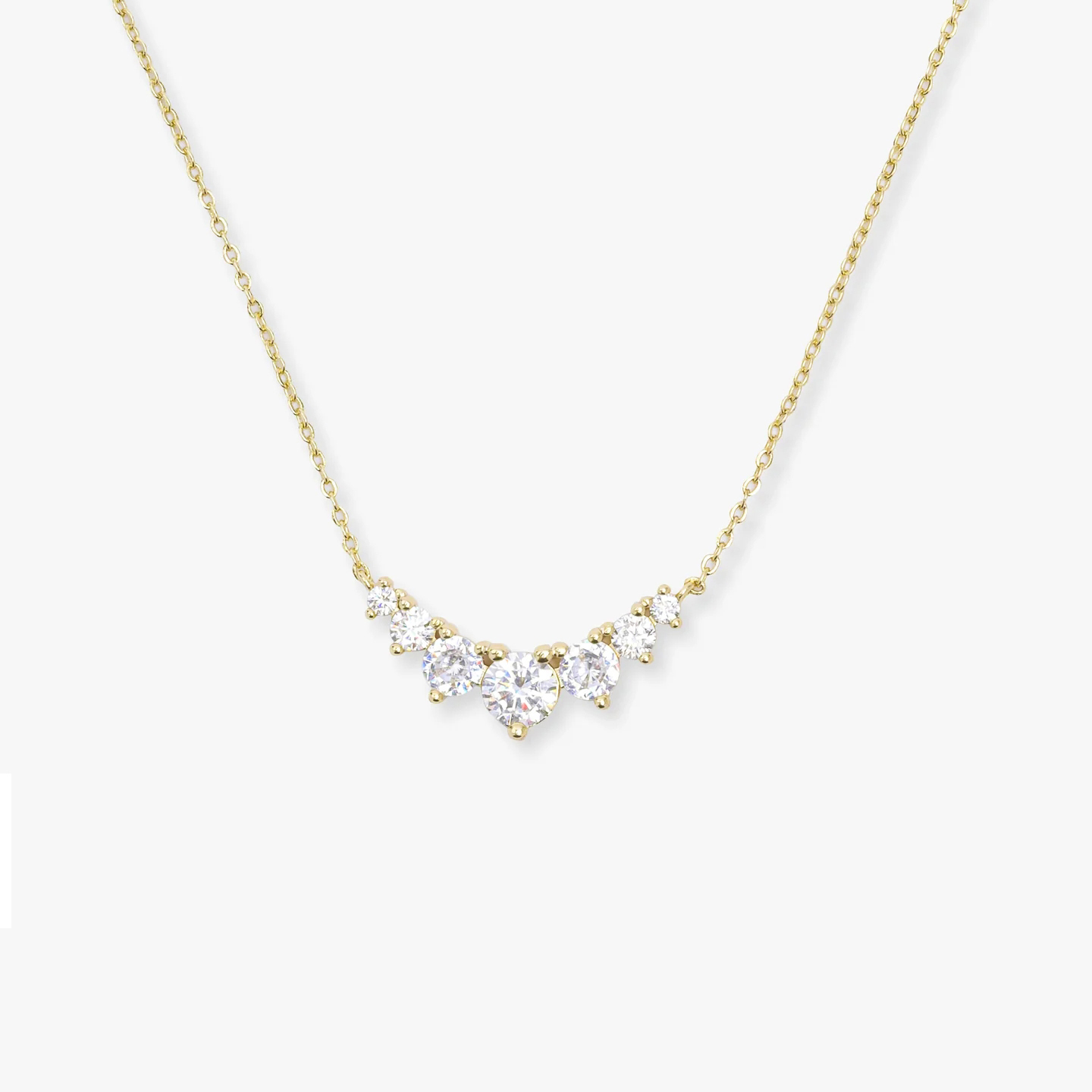Sterling Silver High Quality Dainty Diamond Curve Pendant Necklace Women Accessories