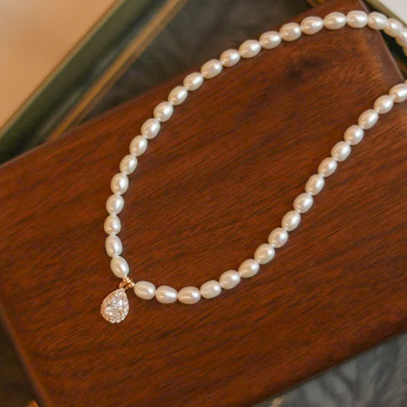 freshwater Pearl choker necklace gold plated Zircon Water Drop Pendant necklace Fine women's jewelry